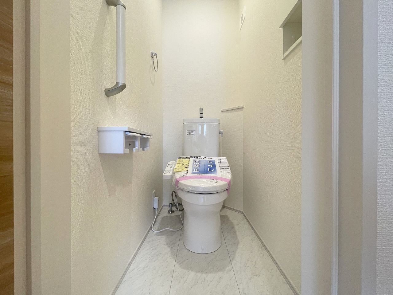 ウォシュレット機能付き。憩いの場としてひそかに注目度の高いお手洗いにもご注目ください。