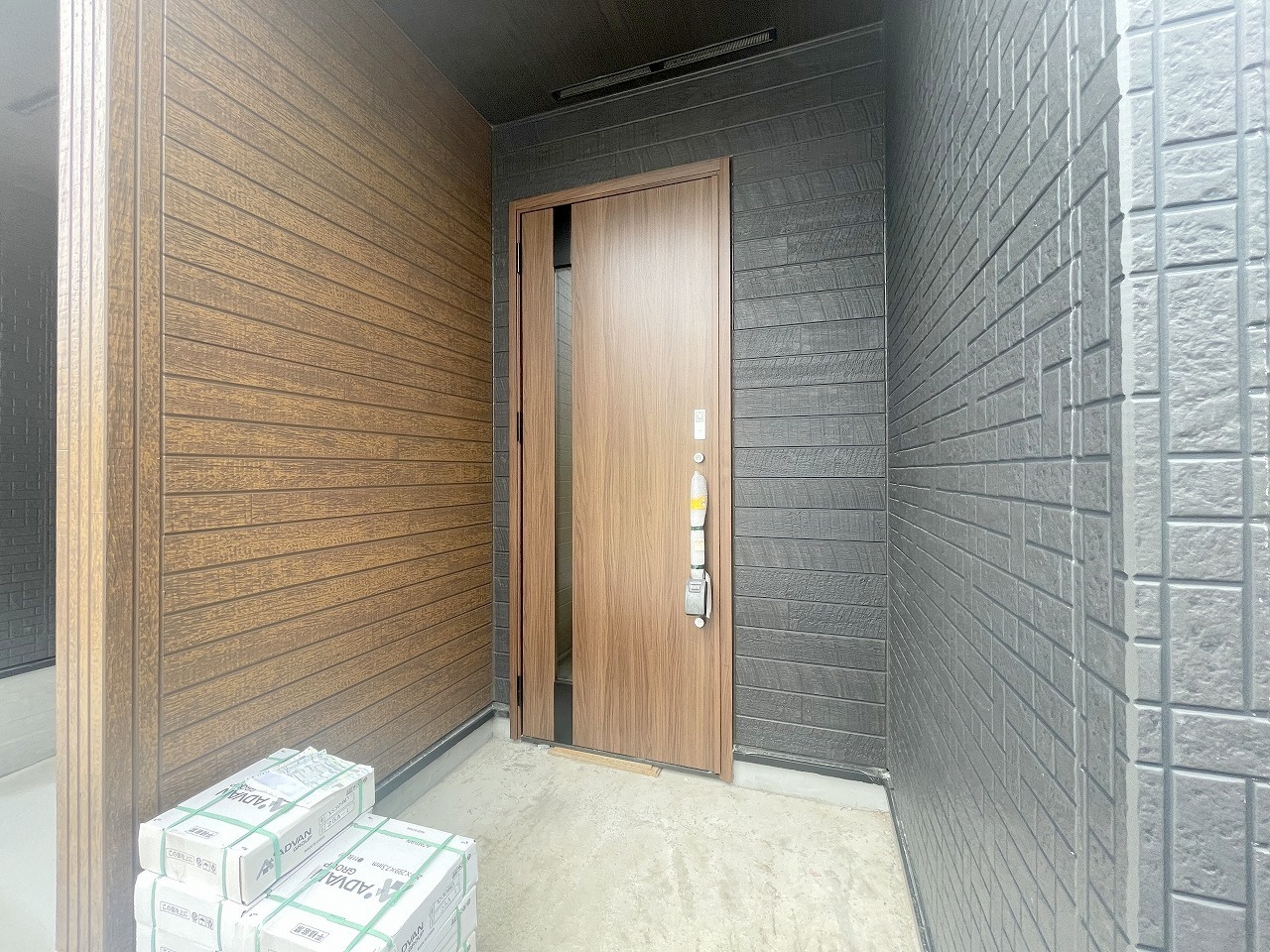 新築の玄関扉。きっと今のお家より重厚感が違います。