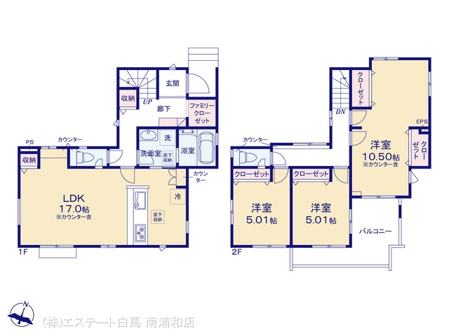 | 間取 | 3LDK (LDK17帖、洋室10.5帖、洋室5.01帖、洋室5.01帖) | ||