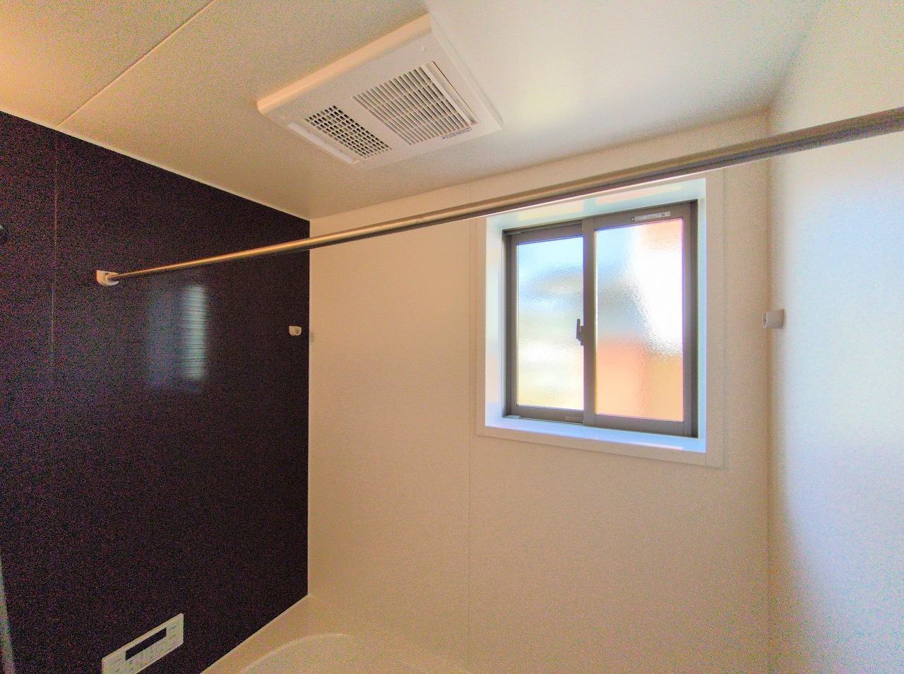 バスユニット1坪タイプ、浴室乾燥機、手すり付き。