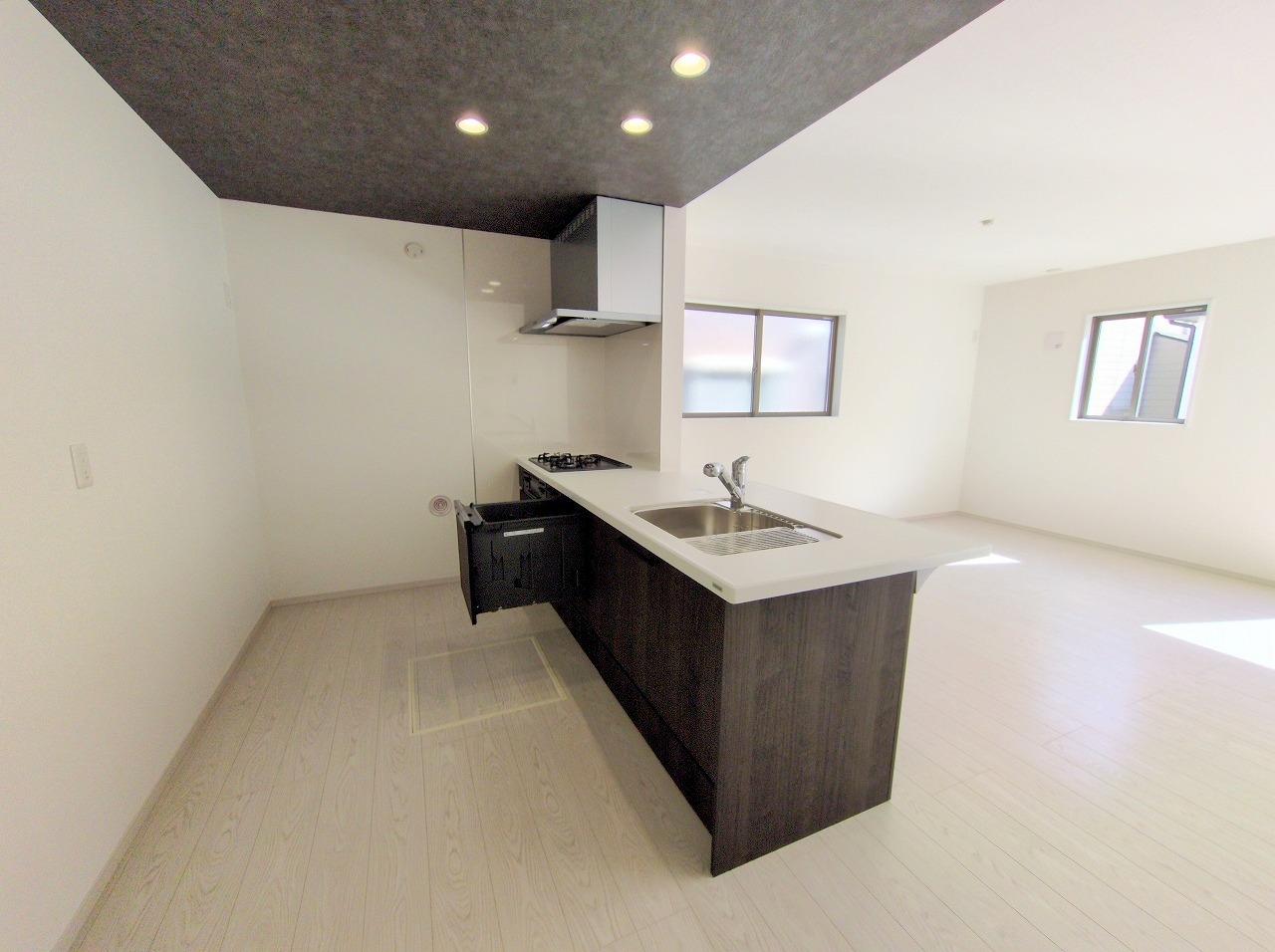 リビングで遊ぶお子様を見守りながらお料理ができる、対面キッチン。