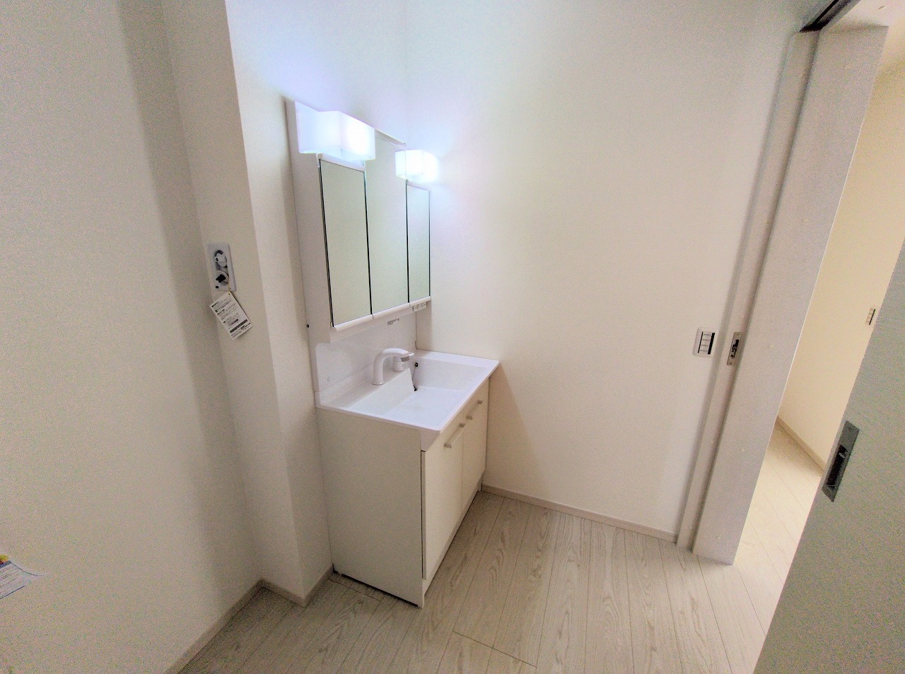 収納豊富な三面鏡付洗面化粧台。水回りのあれこれがキレイに収まりそうですね。