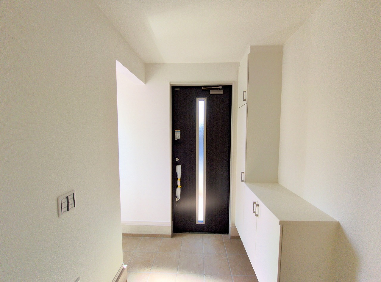 玄関は家の顔でもあります。広いと気持ちがいいですね!玄関を開けたらシューズボックス、使いやすい配置です。