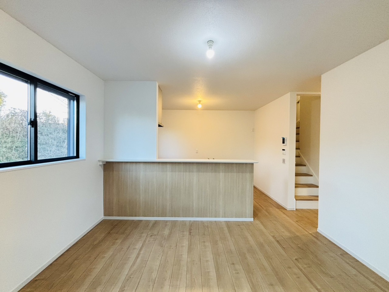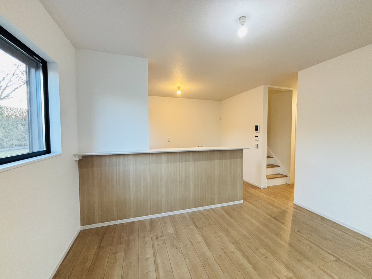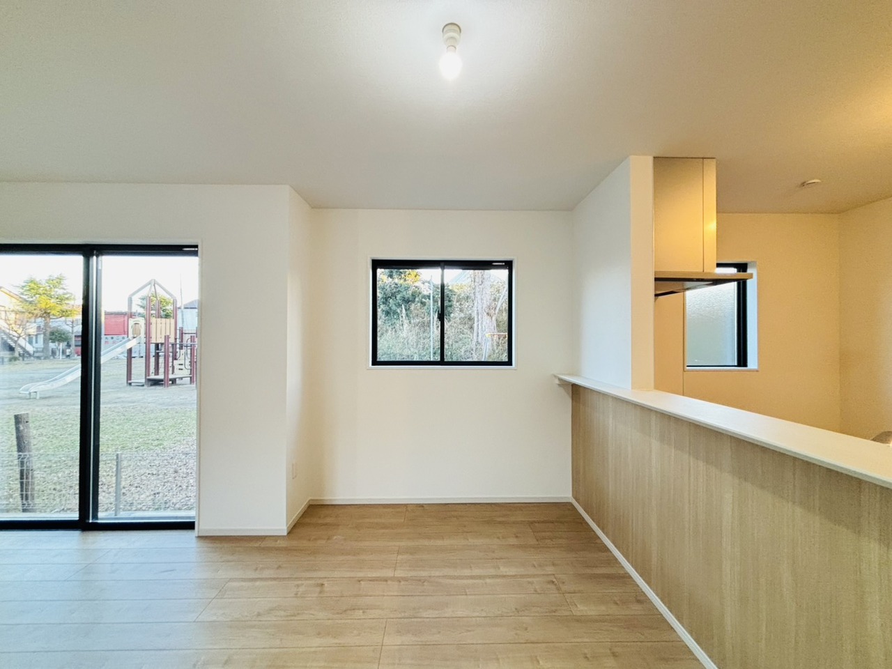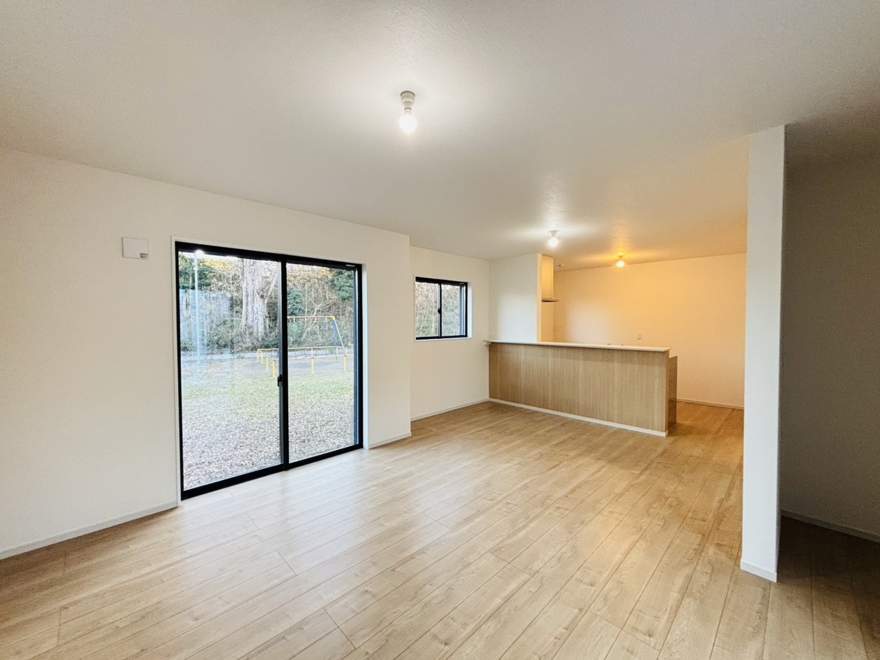 新築の木の匂いのする室内。写真では伝わらないので、ぜひ現地でお確かめください。