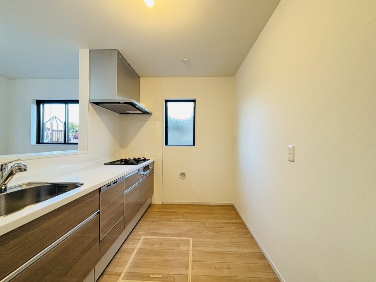 キッチン裏の空間もしっかり確保。カップボードも大きなものを置けそうです。