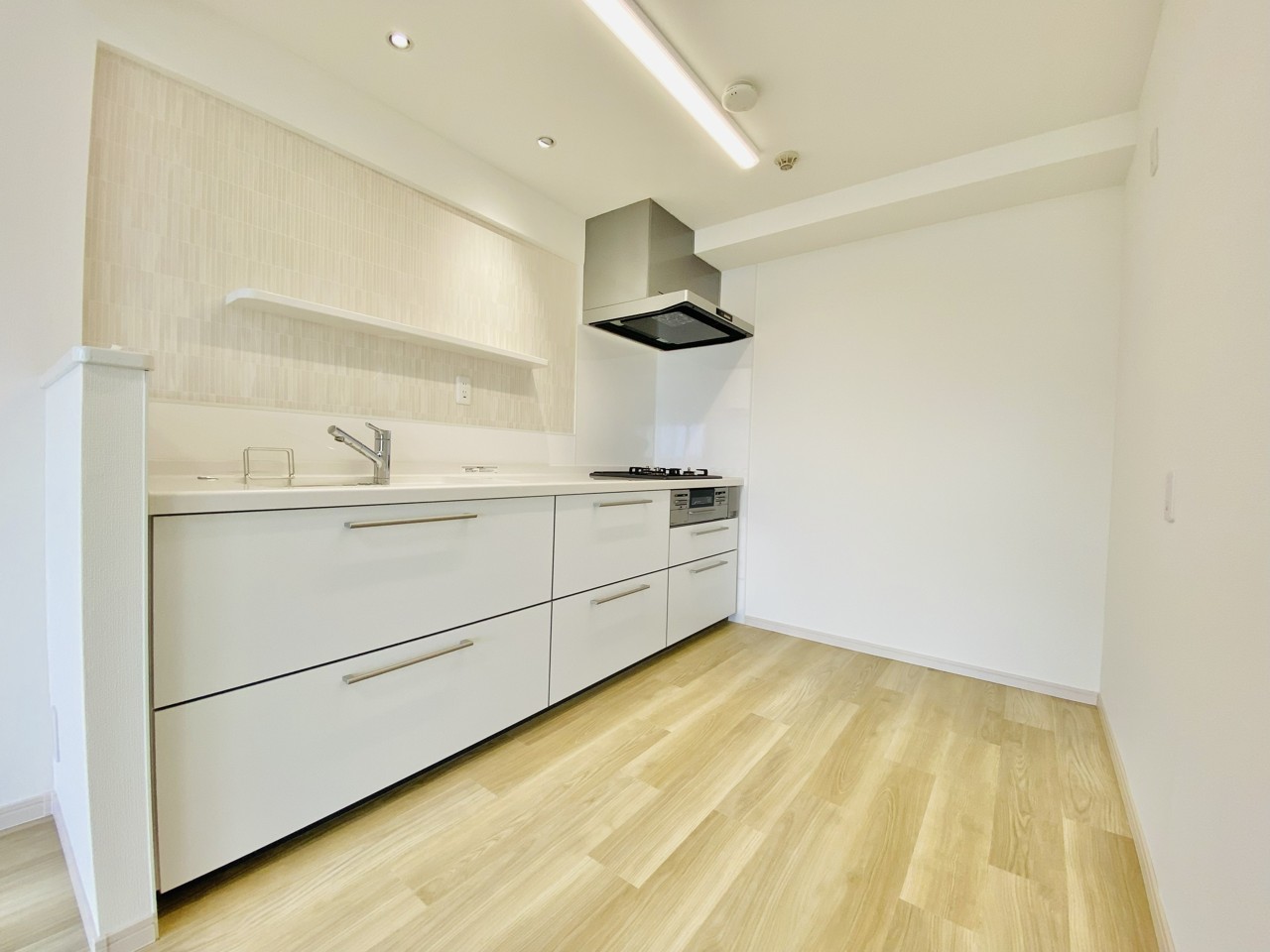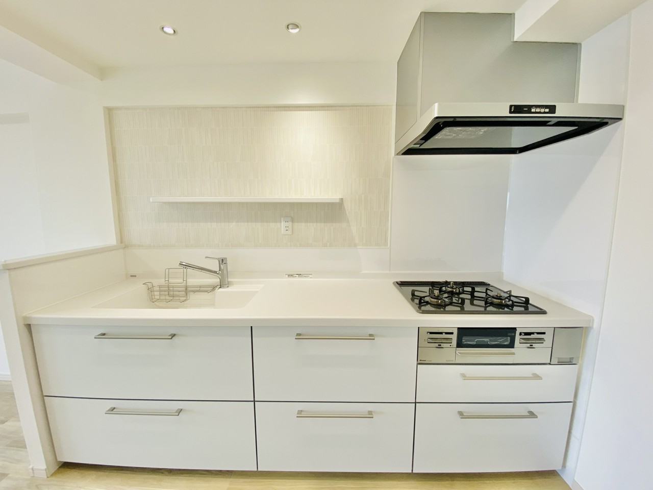キッチンにも清潔感を追求。白亜の台所でお料理を存分に楽しんでください。