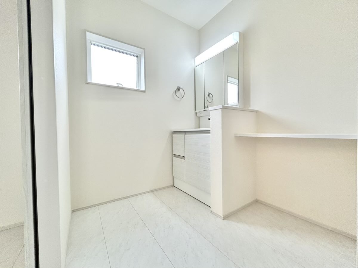 洗面室にはうれしいリネン収納があります。