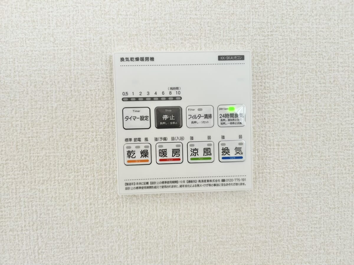 | 設備 | 公営水道、本下水、都市ガス 公共下水、24時間換気システム、南道路、シックハウス対策、バルコニー、人感センサーライト、照明器具、シャンプードレッサー、フローリング、火災警報器(報知機)、洗面室収納 |