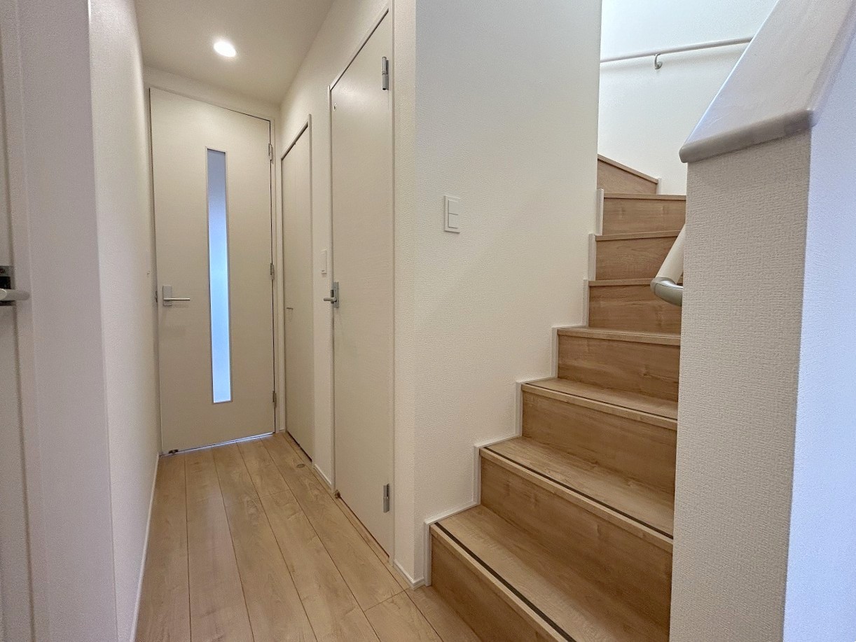 | 設備 | 公営水道、本下水、都市ガス 公共下水、24時間換気システム、シックハウス対策、バルコニー、外壁サイディング、照明器具、フローリング、火災警報器(報知機)、洗面室収納 |
