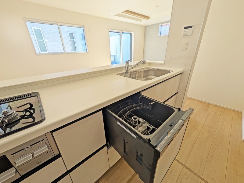 | 設備 | 公営水道、本下水、都市ガス 公共下水、24時間換気システム、シックハウス対策、バルコニー、外壁サイディング、照明器具、フローリング、火災警報器(報知機)、洗面室収納 |