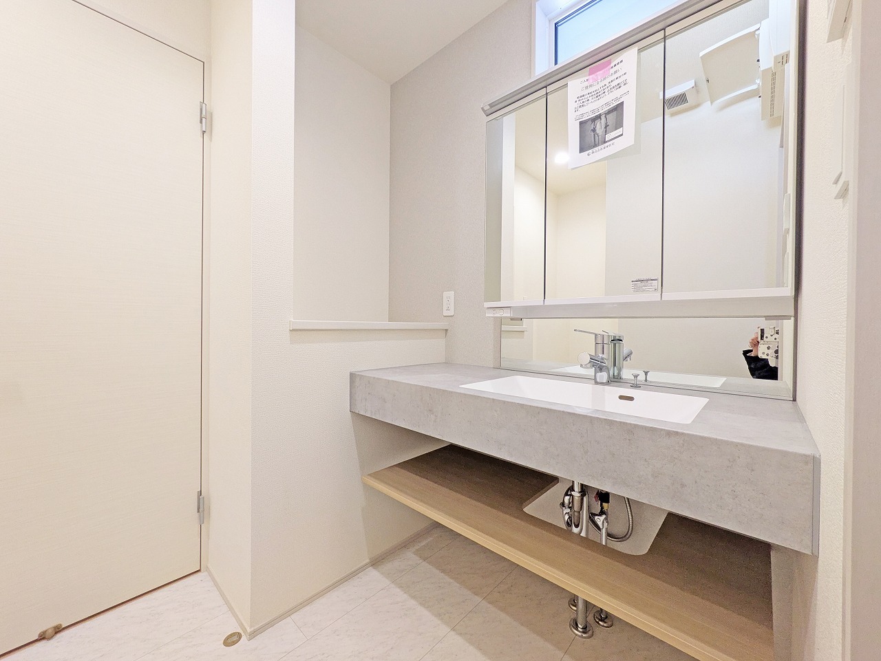 収納力と機能性に優れた、お手入れラクラク洗面化粧台。