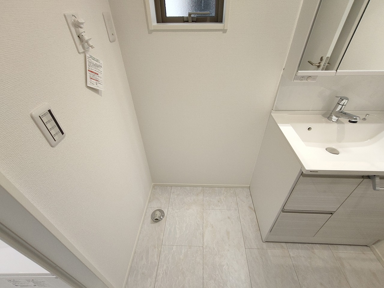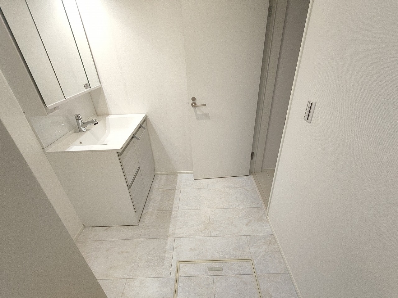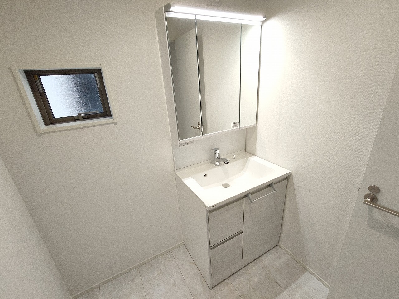 洗面化粧台は清潔感の漂うホワイトをベースカラーに、シンプルなデザインで。