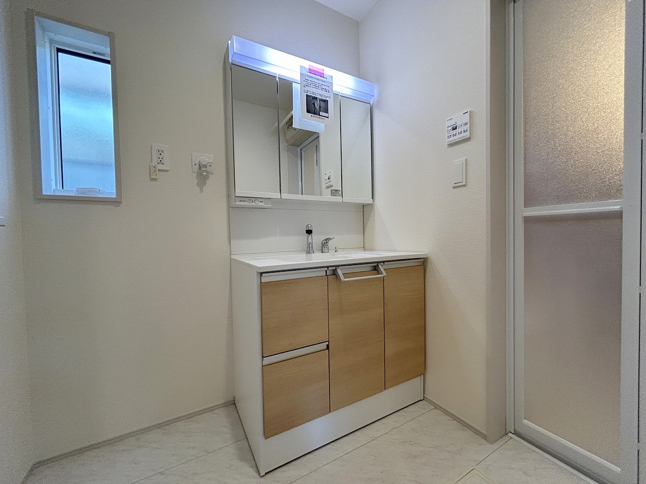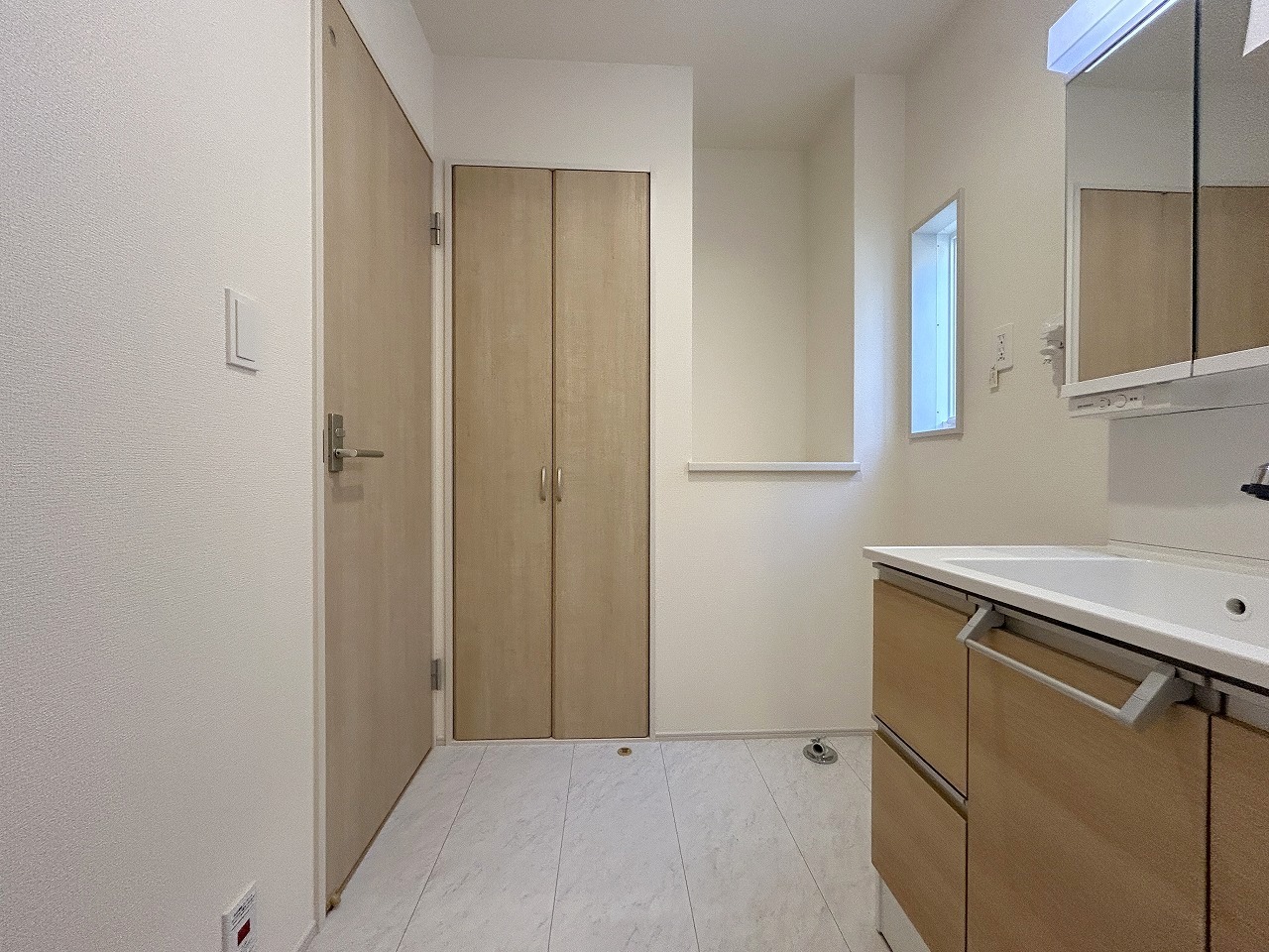 たっぷりの収納を設けたシャワー付洗面台で快適な暮らし。