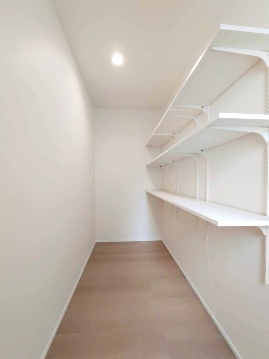 キッチンの奥にはパントリー収納。食品の蓄えは防災用としても。