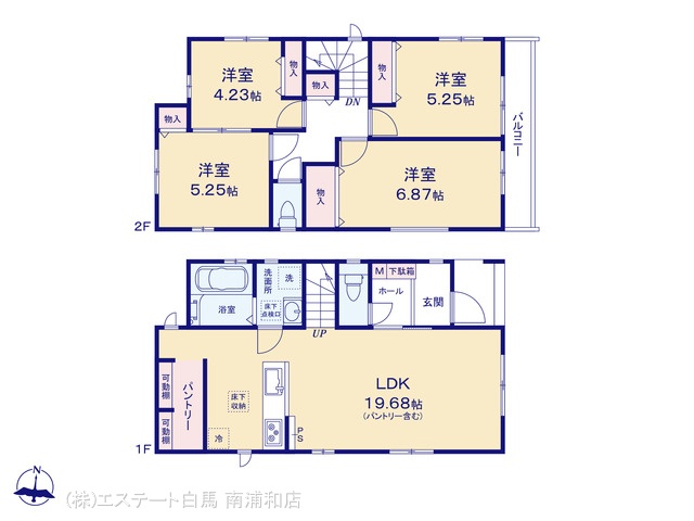 | 間取 | 4LDK (LDK19.68帖、洋室4.23帖、洋室5.25帖、洋室5.25帖、洋室6.87帖) | ||