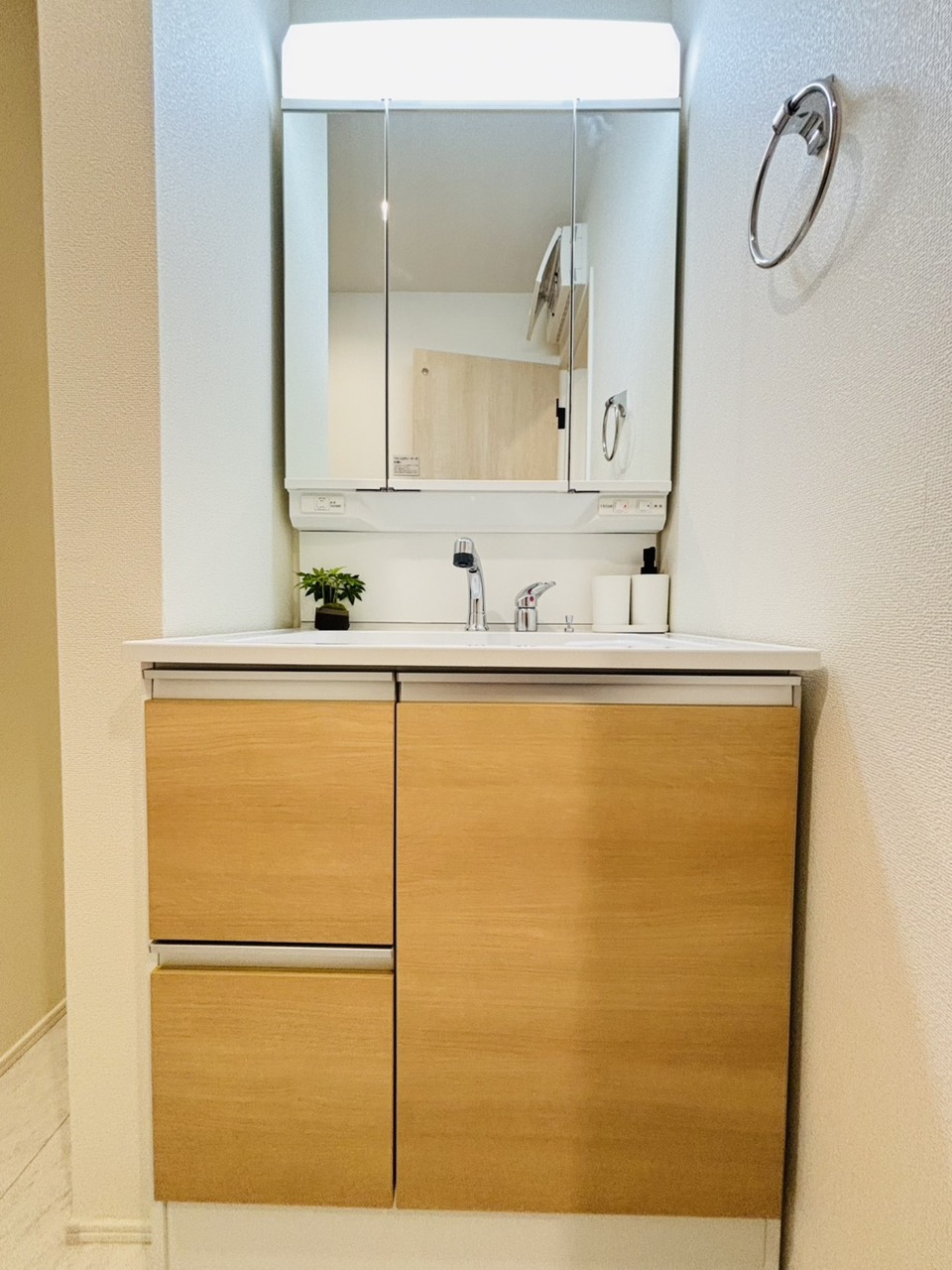 収納力と機能性に優れた、お手入れラクラク洗面化粧台。