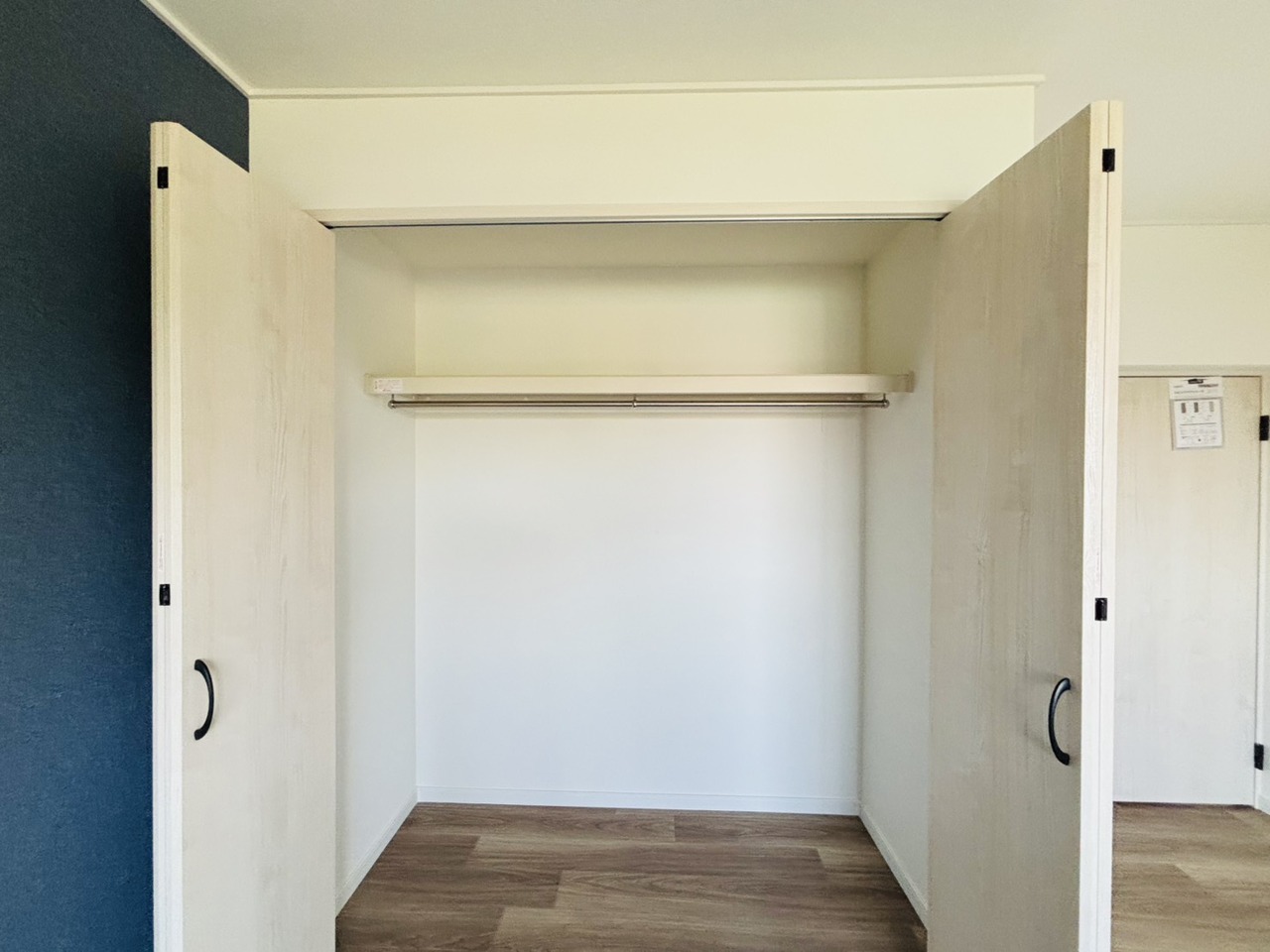 ベースカラーと異なった配色の壁紙を使用。ちょっとお部屋の雰囲気が変わります。