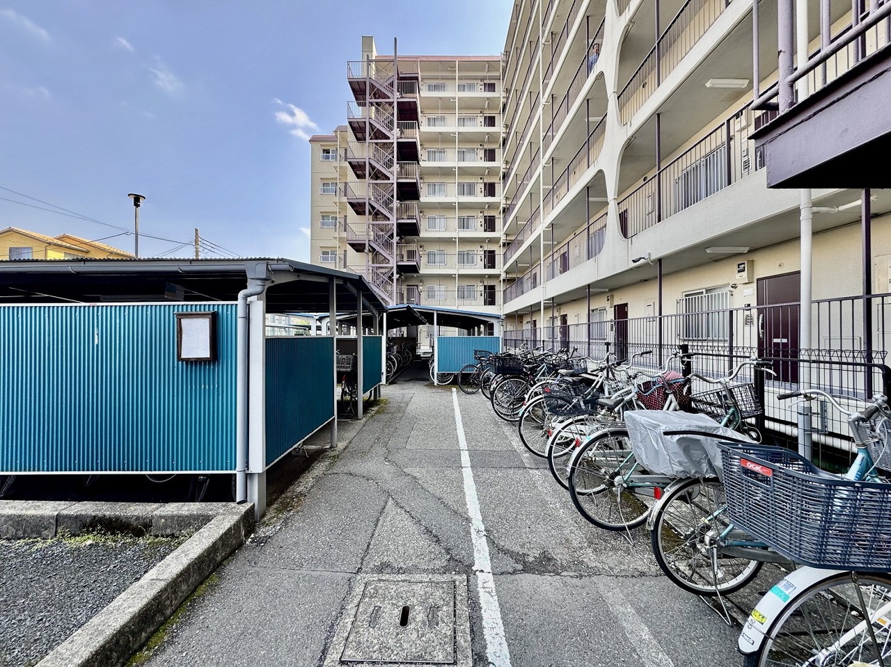 マンション敷地内の屋根付き駐輪スペース
