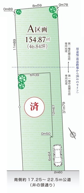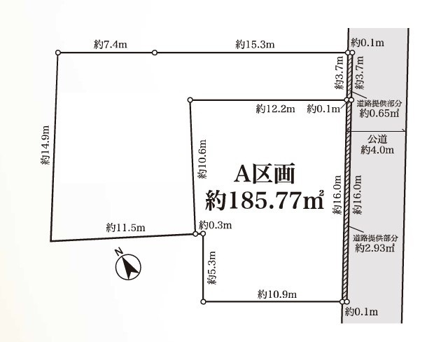 東側約5.4m道路。間口約9.07m。建築条件なし。お好きなハウスメーカーで建築可。保育園、コンビニ徒歩約3分