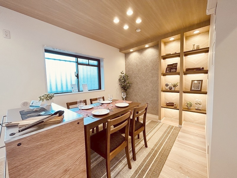 2階フロアは、キッチン・バスルームや玄関ドア・床材などが実際に展示されているショールームフロア。普通は見る事のできない、家の壁の中の断熱の仕組みなどが解る、構造模型も設置。自由にご見学できますので、マイホーム購入前に是非、一度、ご覧になってみて下さい