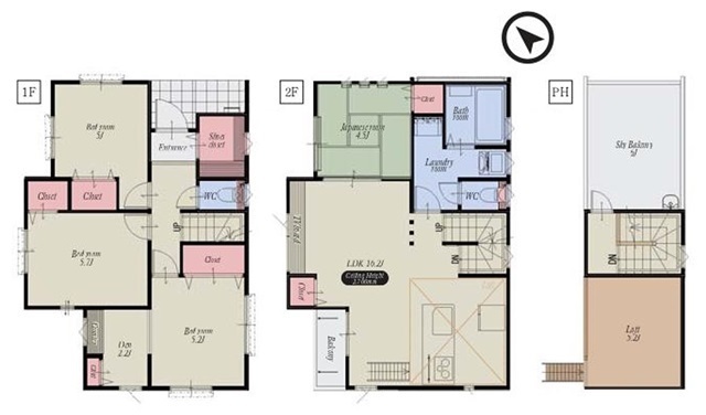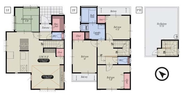 北側公園。固定階段付き小屋裏収納。土間収納、ファミリークローゼット。浴室暖房乾燥機。食洗機。ペアガラス。省エネ給湯器。駐車並列2台(車種による)可