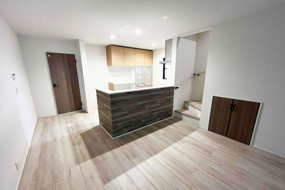 西側道路。固定階段付き小屋裏収納。土間収納。リビング階段。浴室暖房乾燥機。食洗機。バス1坪サイズ。ペアガラス。省エネ給湯器