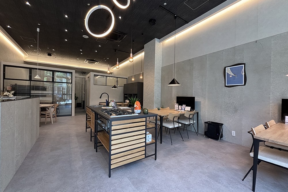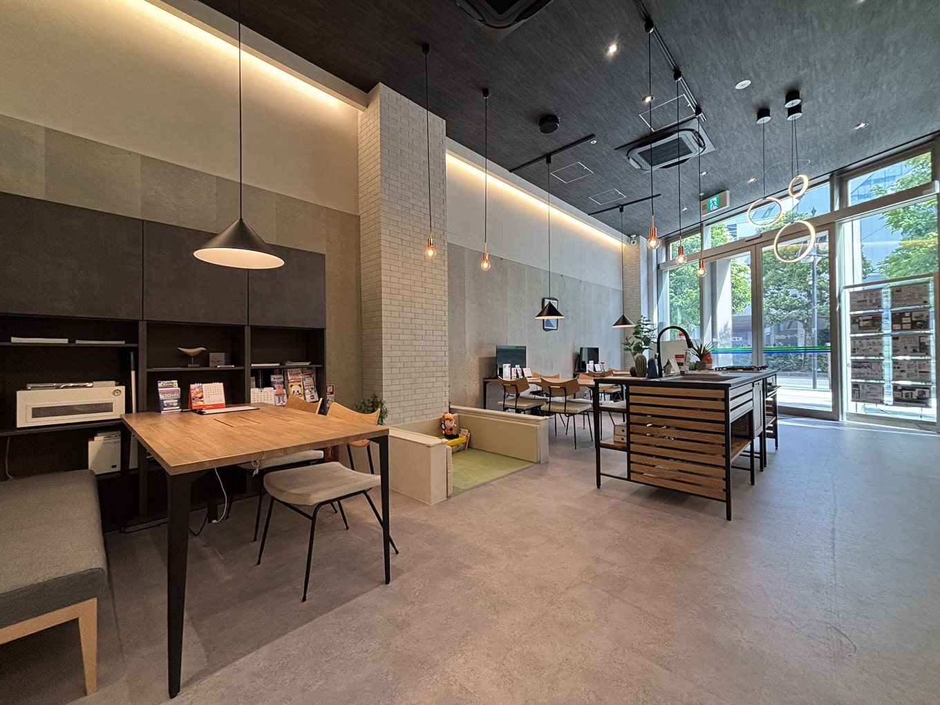 天井が高く開放感があり、落ち着いたカフェのような店舗でくつろぎながら住宅のご相談を承ります。