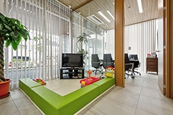 店内は、完全個室のお打ち合わせブースの他お子様連れにも安心な開放スペースもあります。 また、3階のHKUBAラウンジでは、弊社注文住宅「白馬の家」のショールームを開設。テレビ番組でも使用されたキッチン実機やバーチャルリアリティー(VR)ゴーグルを使ってお客様お好みの建物プランを立体化、3Dゴーグルを介して実際に室内にいるような感覚を体験できます。
